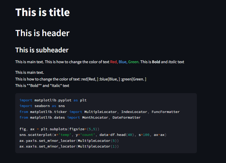 - st.title, st.subheader, st.write 등으로 텍스트 구성